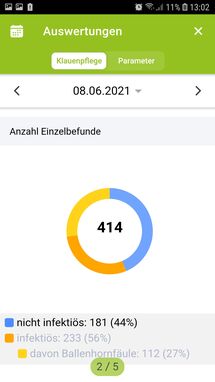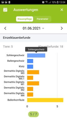 Mit dieser App können sie die Klauenpflege Ihrer Rinder schnell und einfach dokumentieren. Hinterlegt sind dafür die Klauenbefunde nach dem ICAR Atlas für Klauengesundheit, sowie die verschiedenen Mortellaro Stadien aus dem Appendix. Durch die Anbindung an den Rinderdatenverbund (RDV) steht Ihnen ihr gesamter Tierbestand jederzeit tagesaktuell zur Verfügung. Verschiedene Sortier- und Filtermöglichkeiten ermöglichen schnelles und effizientes Arbeiten. Nach Abschluss der Dokumentation finden sie die aktuellen und historischen Klauenbefunde in einem übersichtlichen Klauenpflegeprotokoll. Um keine Nachkontrolle, Verbands- oder Klotzabnahme zu übersehen, können sie sich zu jedem Tier einen Termin mit Erinnerungsfunktion oder eine Notiz hinterlegen. Die Analyse der Dokumentation erleichtert Ihnen die App mithilfe anschaulicher Grafiken.