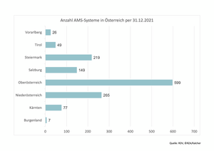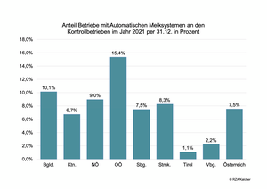 Anzahl Betriebe mit Automatischen Melksystemen in Österreich nach Bundesländern per 31.12.2021.