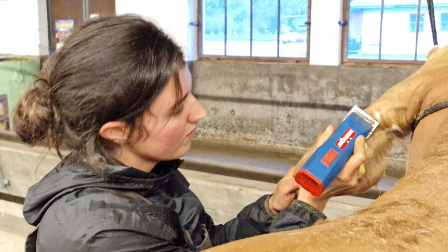 Die zwei Erstlingskühe der Rasse Brown Swiss wurden von Expertin Anna Koiner vorgestellt. Dabei wurden Töchter der Stiere AG ALPSEE und AG ANIS präsentiert. Brown Swiss Kühe sind den Milchproduzent:innen vor allem durch ihren hohen Gehalt an Kappa-Kasein BB bekannt, einem Protein, das für eine höhere Käseausbeute bekannt ist. Die Kuh ARNIKA vom Vererber AG ANIS stammt vom Betrieb Geisler aus Weerberg und kam nahezu direkt von der Alpung nach Hannover, dh von 1.800 m auf rund 50 m Seehöhe. „Sie ist eine Kuh mit guter Breite und Tiefe und damit auch ein guter Grundfutterverwerter“, so Expertin Koiner. ELLA stammt vom Tiroler Bergbauernbetrieb Luxner aus Kaltenbach und kommt aus der Linie des bekannten Vererbers AG Alpsee, der Nachkommen geprüft ist und seine Stärken in der Milch und im Fundament weitergibt. „Harte Klauen haben die Brown Swiss-Zucht über Jahrhunderte auf den Tiroler Alpen mitgeprägt. Nur so ist ein sicheres Auftreten sowohl auf der Alm als auch auf dem TopTierTreff möglich“, so die Expertin Anna Koiner. Vor allem das ruhige Temperament erleichtert die Arbeit in der täglichen Routine. Beide Jungkühe fanden umgehend ihren neuen Besitzer. Sie stehen nun auf einem 80-Kuh-Betrieb in unmittelbarer Nähe des Messezentrums Hannover.