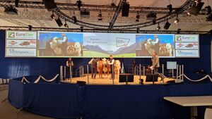 Diesen Ausführungen schlossen sich auch die weiteren Fleckvieh-Experten mit Thomas Bacher, Friedrich Führer und Ernst Grabner an. Sie kommentierten die Fleckviehgruppen an den Folgetagen. Im Rahmen eines Schaumelkbewerbes, der von der Deutschen Landwirtschaftsgesellschaft (DLG) veranstaltet wurde, standen KIMBERLY (V: GS DER BESTE) und MELISSA (V: GS HERZTAKT) auf der Bühne. Sie zeigten vor einem sichtlich beeindruckten Publikum, was Fleckvieh aus Österreich zu leisten imstande ist und untermauerten damit die einmal mehr die Stärken der Doppelnutzungsrasse Fleckvieh.