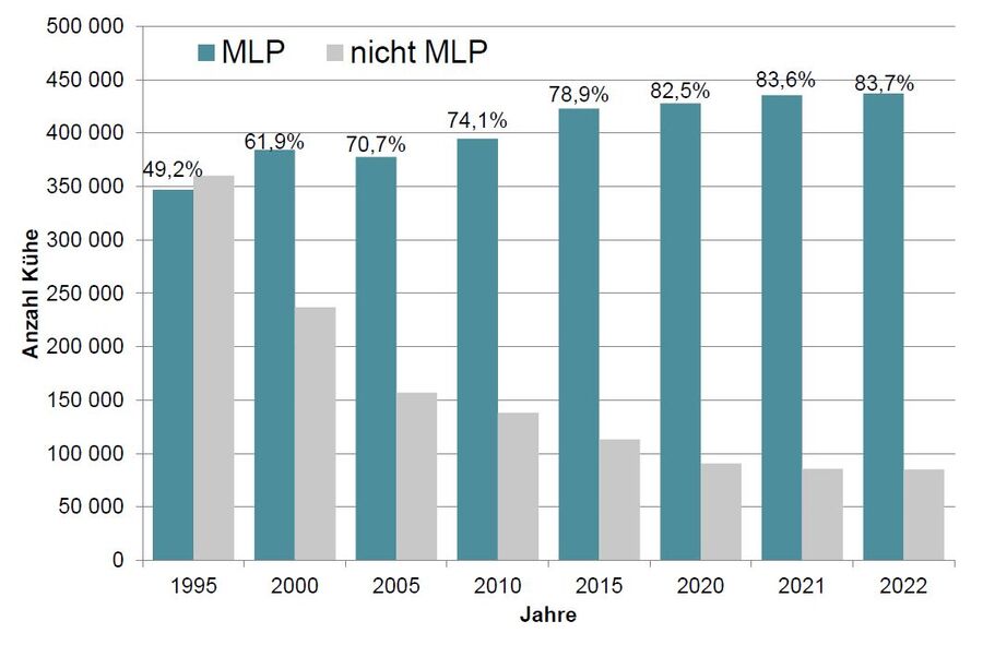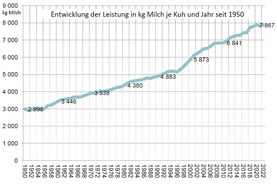 Die aktuellen Ergebnisse der Milchleistungsprüfung vom Kontrolljahr 2022 zeigen auch heuer wieder, dass die Milchproduktionsbetriebe auf die Serviceleistungen der österreichischen Landeskontrollverbände zurückgreifen. Im Prüfungszeitraum 1. Oktober 2021 bis 30. September 2022 standen 83,7% aller Milchkühe (2021: 83,6 %) unter einer lückenlosen Leistungsprüfung und Qualitätssicherung. Der Anteil der kontrollierten Kühe basiert auf den Daten des Bundesministeriums für Land- und Forstwirtschaft, Regionen und Wasserwirtschaft per 1. September 2022. Den höchsten Anteil an kontrollierten Kühen weisen wie schon in den vergangenen Jahren die Bundesländer Tirol und Vorarlberg mit jeweils 91,1 % der Tiere, gefolgt von Niederösterreich mit 87,6 % und vom Burgenland mit 85,9 % aller Milchkühe auf. Die Kontrollorgane der österreichischen Landeskontrollverbände (LKVs) erhoben im aktuellen Prüfjahr auf 18.065 Betrieben (2021: 18.435 Betriebe) Leistungsdaten von 437.033 Milchkühen (2021: 435.426 Milchkühe). Pro Jahr sind dies in etwa 4 Mio. Kontrollen bzw. Ergebnisse, die in Wien über die ZuchtData EDV-Dienstleistungen GmbH der RINDERZUCHT AUSTRIA jährlich verarbeitet werden. Die Anzahl der kontrollierten Betriebe ging um 370 bzw. um 2 % zurück. Das entspricht dem seit Jahren anhaltenden Strukturwandel in der heimischen Rinder- und Milchwirtschaft. Der Bestand an kontrollierten Kühen erhöhte sich um 1.607 Stk. oder um 0,4 %. Der gesamte Milchkuhbestand erhöhte sich geringfügig per Septemberzählung 2022 um 0,2 % oder um 987 Stk. auf 522.023 Tiere. Die gemessenen Leistungen entwickelten sich in den verschiedenen Bundesländern höchst unterschiedlich. Zeigen die genetischen Trends bei den Leistungsmerkmalen überall nach oben, so sind für die Leistungsunterschiede verschiedene Einflüsse außerhalb der Zucht verantwortlich. Über alle Rassen hinweg wurden bei allen Kontrollkühen 7.867 kg Milch bei 4,17% Fett und 3,42 % Eiweiß gemessen. Damit haben die Leistungen im Vergleich zum Vorjahr um 50 kg zugenommen. Die höchsten Leistungssteigerungen verzeichneten die Bundesländer Steiermark (+193 kg), Burgenland (+188 kg) und Kärnten (+182 kg). Die durchschnittlichen Fett-% erhöhten sich um 0,01 Prozentpunkte, während die österreichweiten Eiweißprozente um -0,01 zurückgingen. Die höchsten Leistungen wurden mit 9.356 kg Milch auch heuer wieder auf den burgenländischen Betrieben gemessen, ebenso die höchsten Fettprozente mit 4,30%. Die höchsten Eiweißprozente erreichten mit 3,46% die oberösterreichischen Betriebe.