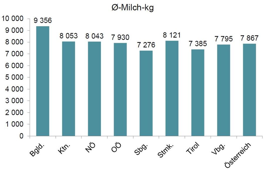 Die durchschnittliche Herdengröße auf den kontrollierten Betrieben ist von 23,6 auf 24,2 Kühe wie schon in den vergangenen Jahren wieder leicht angestiegen. Die größten Betriebe stehen nach wie vor im Burgenland mit 45 Kühen je Betrieb, die kleinsten Strukturen weisen die Tiroler Betriebe mit 12,6 Kühen je Betrieb auf. Die meisten Kühe stehen mit 133.248 Stk. in Oberösterreich, gefolgt von Niederösterreich mit 88.268 Stk. und der Steiermark mit 66.034 Kühen. Nahezu ein Viertel aller Betriebe, insgesamt 4.450 oder 24,6 % sind in Tirol beheimatet, die allerdings nur ein Achtel (12,8 %) aller Kühe halten.