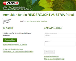 Nach Eingabe ihrer Betriebsnummer und Klick auf Login werden sie zum neuen eAMA-Partnerseitenlogin der Rinderzucht Austria weitergeleitet. Die Anmeldung läuft somit gleich wie in der RDV Mobil App unter AMA-Meldungen.