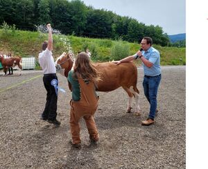 Danach übermittelten Linda Lechner, Julia Sattler, Kathrin Hobl und Jakob Hagler den Teilnehmer:innen Grundwissen zur richtigen Tierpräsentation und zum Tierstyling. Bereits am ersten Tag wurden die ausgewählten Schaurinder gewaschen und geschoren. Den Tagesabschluss bildete ein erstes Vorführtraining am Betriebsgelände.