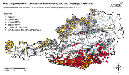 Mit den kühleren Temperaturen im Herbst und Winter dürfte die Aktivität der übertragenden Gnitzen zurückgehen – und damit auch die Zahl der Neuinfektionen. Wichtig bleibt dennoch der vorbeugende Schutz: Das Gesundheitsministerium und die AGES empfehlen weiterhin ausdrücklich, Rinder und Schafe gegen alle in Österreich vorkommenden Serotypen zu impfen, um die Tiere bestmöglich vor schweren Krankheitsverläufen zu schützen.