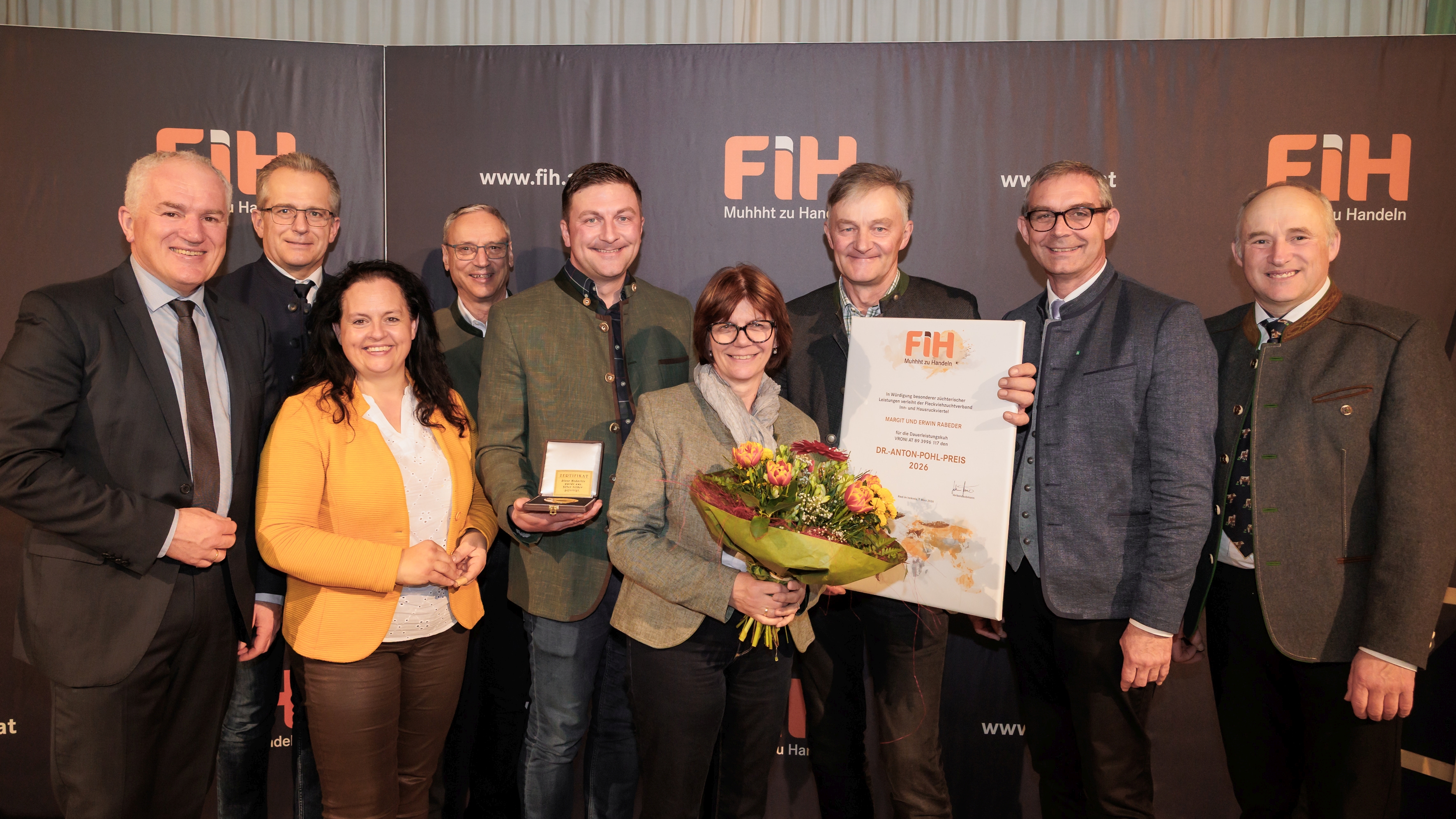 Die Züchterinnen und Züchter wurden für Ihre Erfolge bei Oö Zuchtrinderausstellung im Rahmen der Rieder Messe und die große Anzahl von über 100 neuen 100.000 l Kühen geehrt. FIH-Obmann Johann Hosner und Fleckvieh Austria Obmann Sebastian Auernig gratulierten den Gewinnern bei der Auswertung zum Züchter des Jahres der Fleckvieh Austria. Die Plätze 2 bis 5 wurden von FIH–Züchtern belegt. Mit dem begehrten Dr. Anton-Pohl-Preis wurden Margit und Erwin Rabeder aus Waizenkirchen für ihre Kuh Vroni ausgezeichnet.