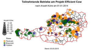 Um die züchterischen Potentiale zu analysieren und Möglichkeiten und Wege auszuarbeiten, wurde daher 2012 unter Federführung der Rinderzucht AUSTRIA das Projekt „Efficient Cow“ gestartet. Von 167 österreichischen Betrieben und ca. 5.400 Kühen wurden umfangreiche Daten aus den Bereichen Fütterung, Körpergewicht, Körpermaße, Tiergesundheit erhoben: